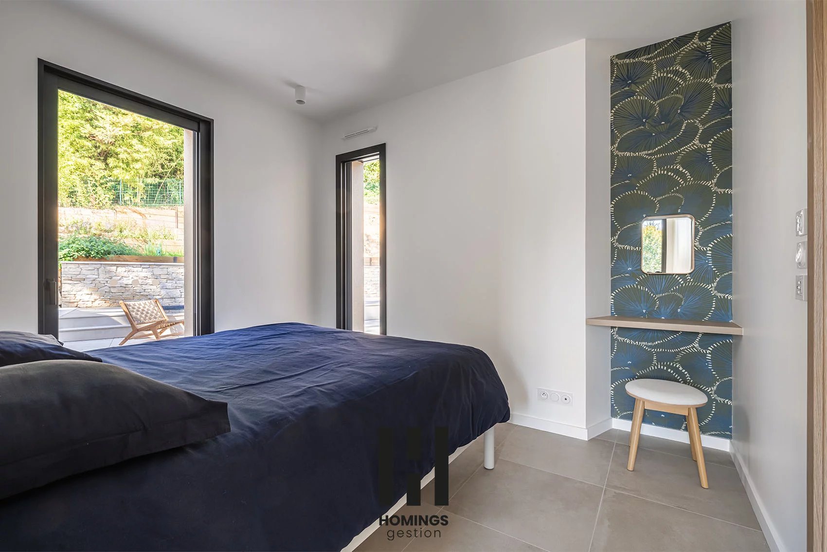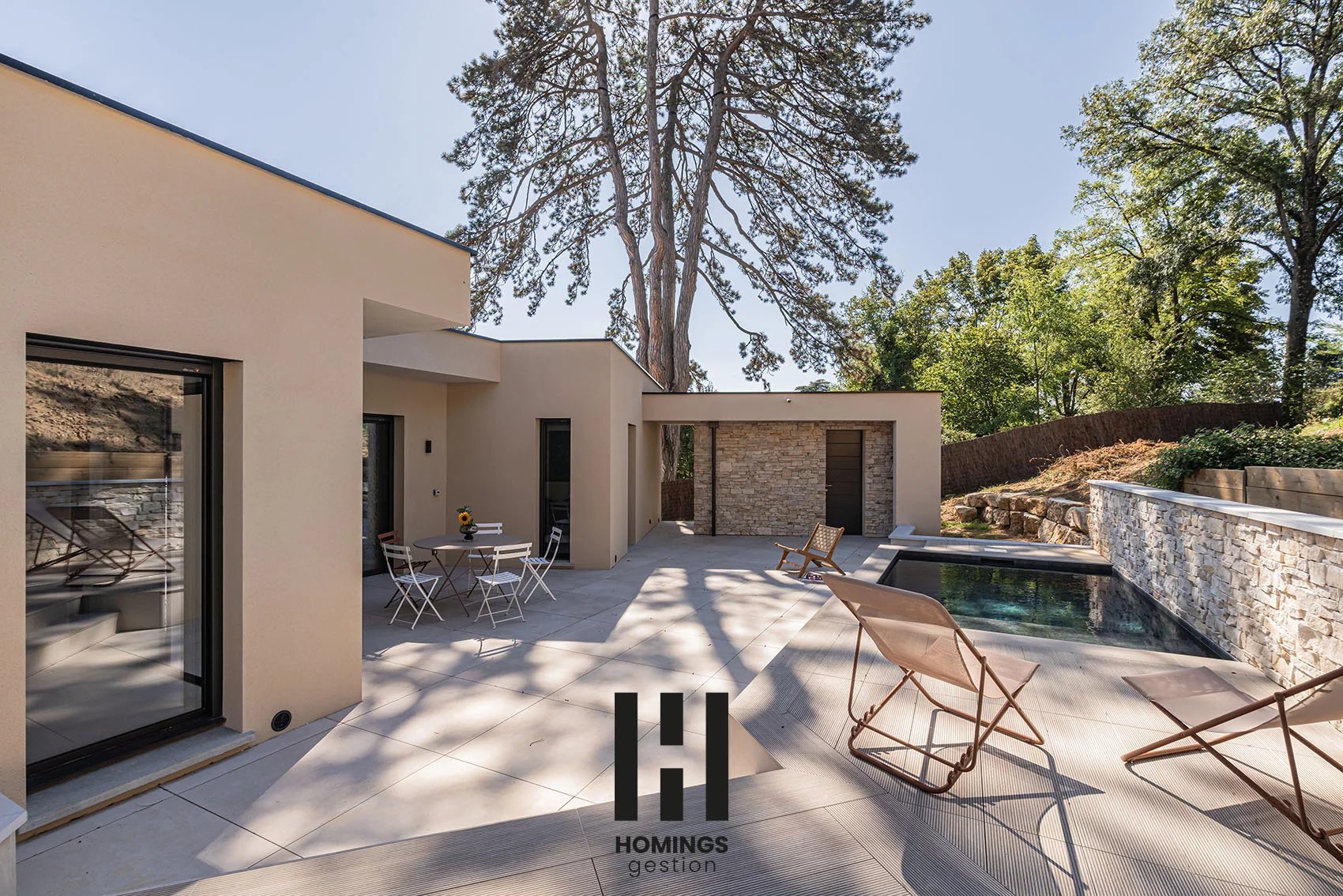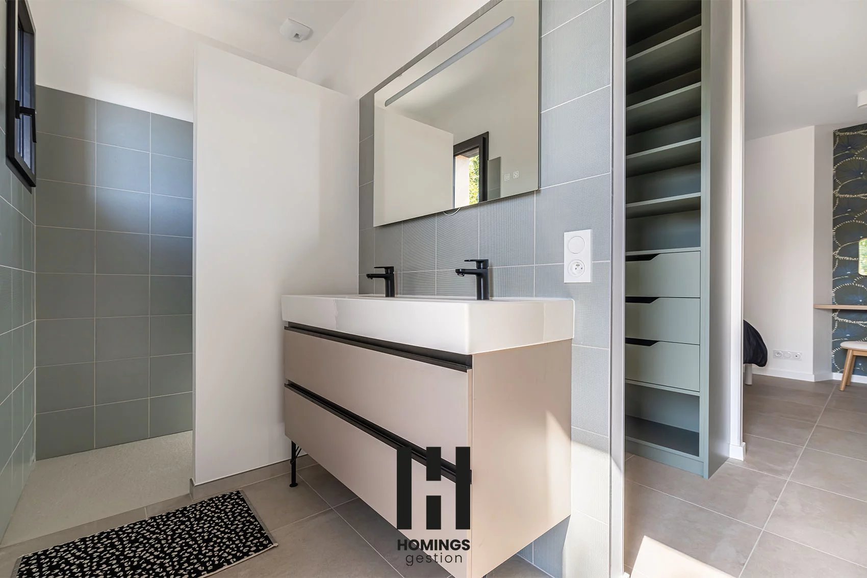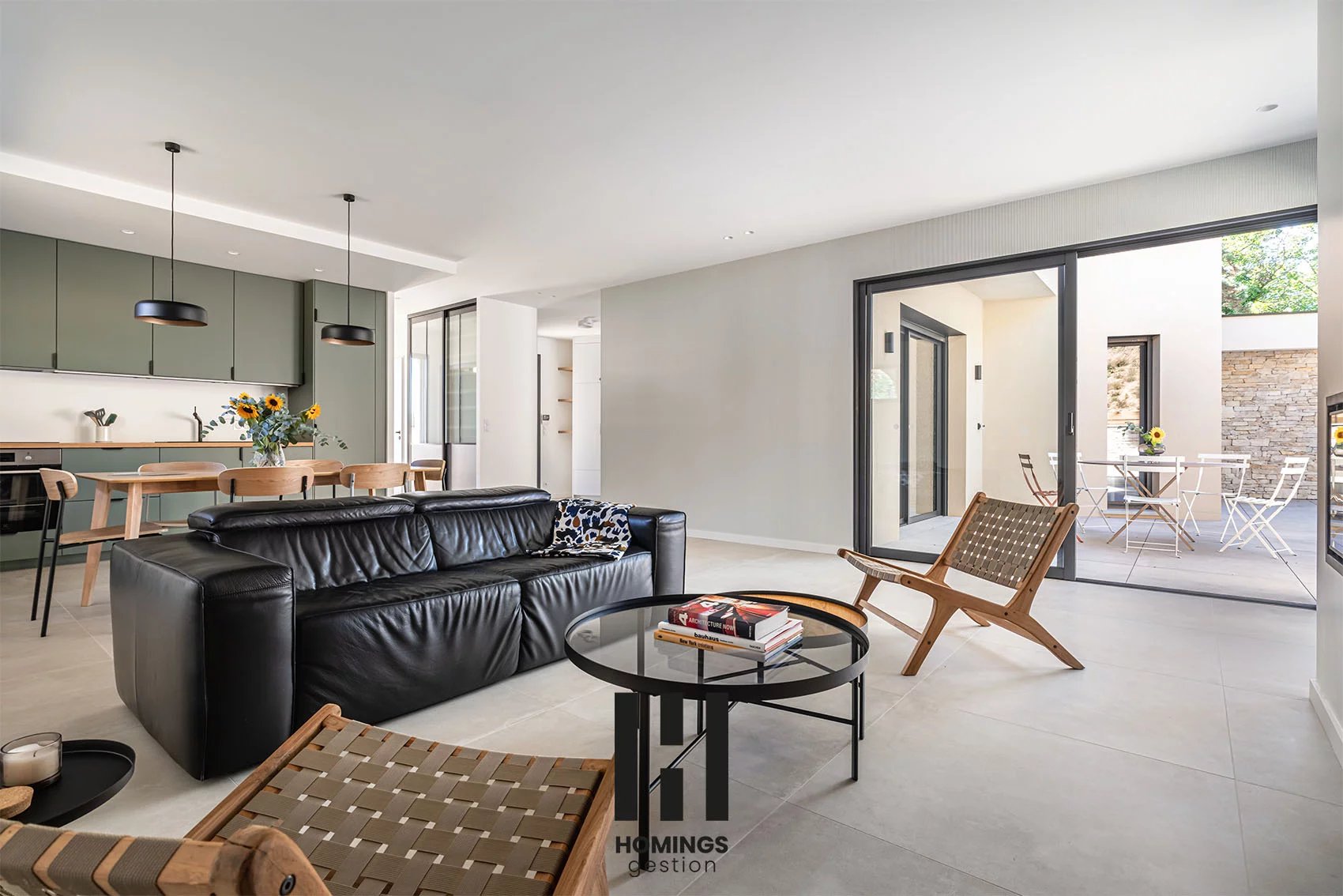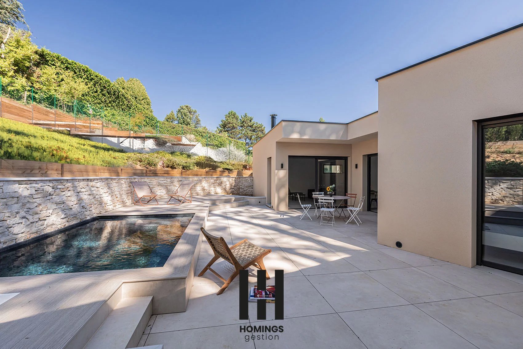 Elle se compose d'une vaste pièce à vivre avec cuisine équipée et meublée ouverte sur le séjour, une arrière cuisine. 3 chambres dont une suite parentale avec dressing et salle d'eau privative. Les enfants bénéficient de leur salle de bains, un bureau avec couchage d'appoint. Vous pourrez profitez de la terrasse sans vis-à-vis avec une piscine sécurisée, local piscine avec 3e wc. Un vrai bijou. Libre de suite.